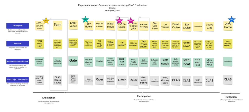 After completing the experience map my team and I identified two moments that made a difference in the experience or moments that matter. We found that our two moments that mattered were Purchasing/Arrival and On the Boat Introduction.