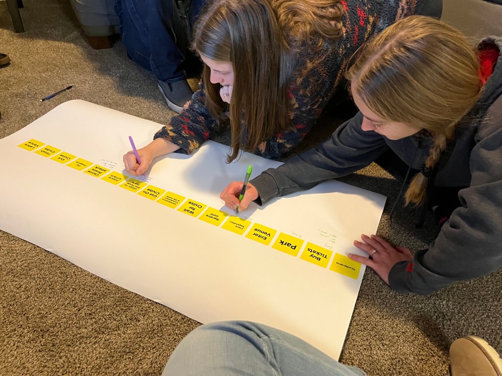 For my additional technique I decided to get a group of my friends together so they could examine my customer journey map, which is discussed below, and tell me their reactions to different touchpoints of the experience.